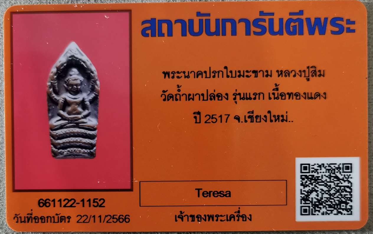 ปรกใบมะขาม รุ่นแรก หลวงปู่สิม วัดถ้ำผาปล่อง เชียงใหม่ ปี2517 พร้อมบัตรรับรอง