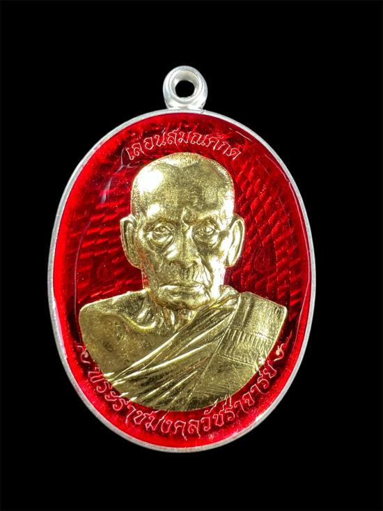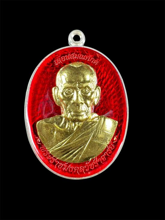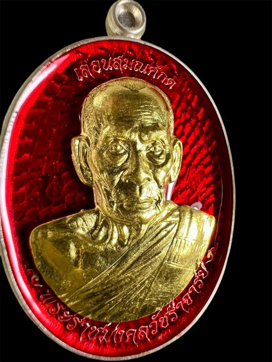 เหรียญเลื่อนสมณศักดิ์หลวงพ่อพัฒน์ วัดห้วยด้วน จ.นครสวรรค์ เนื้อเงินหน้ากากทองคำลงยาแดง เลขโค๊ตนัมเบอร์ 3131 สภาพสวยจมูก 100