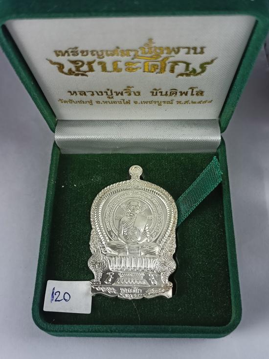 เหรียญนั่งพาน ชนะศึก หลวงปู่พริ้ง วัดซับชมพู่ ปี58 เนื้อเงิน เบอร์ 120 พร้อมกล่องเดิมครับ (เหรียญหนัก19.48กรัม) |