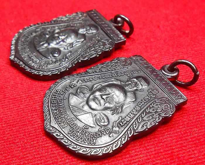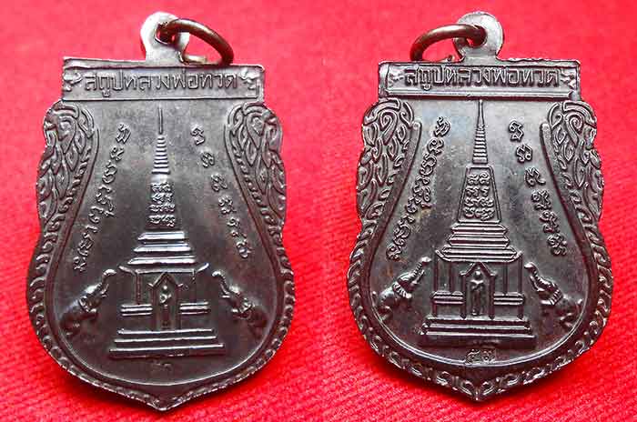 2 เหรียญ เสมาใหญ่พุทธซ้อน เนื้อทองแดงรมดำ หลวงพ่อทวด วัดช้างให้ หลังเจดีย์ เสาร์ 5 ปี 2555 |
