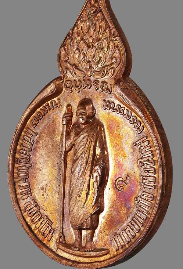 เหรียญหลวงปู่แหวน สุจิณฺโณ ยืนถือไม้เท้า หลังรวมใจ ปี2518 เนื้อทองแดง (สภาพทำความสะอาดผิวมาครับ) |
