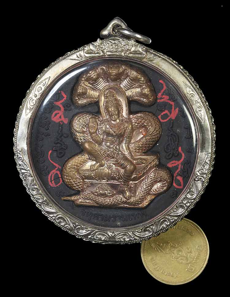 วัดใจ**สุริยันจันทรา ดวงตราเทวฤทธิ์ ปี 2547 วัดพุทไธศวรรย์*{ มีรอยจาร }*เนื้อดำ+หน้ากากทองแดง พร้อมตลับ....ตามสภาพครับ