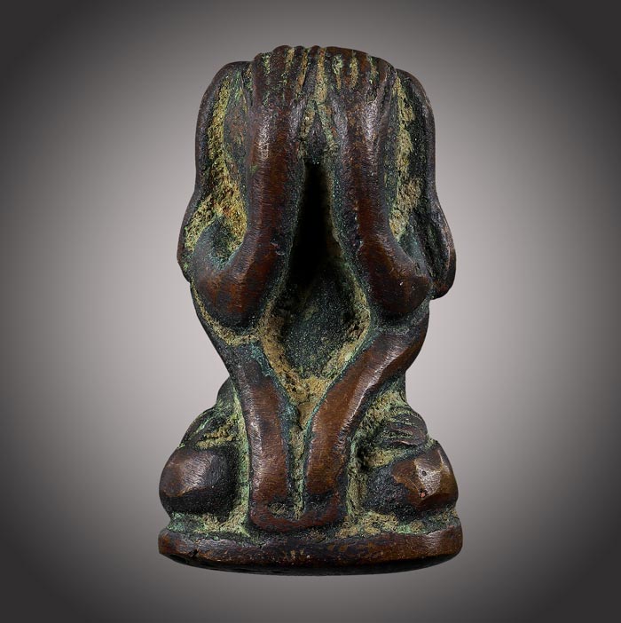 พระปิดตาหล่อโบราณ พิมพ์หูกระต่าย(ไม่ทราบที่)เนื้อโลหะผสม สภาพเก่ามีอายุ |