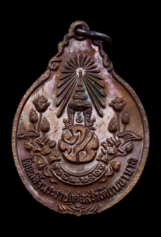 เหรียญรุ่นสร้างโรงพยาบาล หลวงปู่แหวน วัดดอยแม่ปั๋ง พิมพ์หลังภปร. ปี2521 พระสวยผิวเดิมๆพร้อมกล่อง