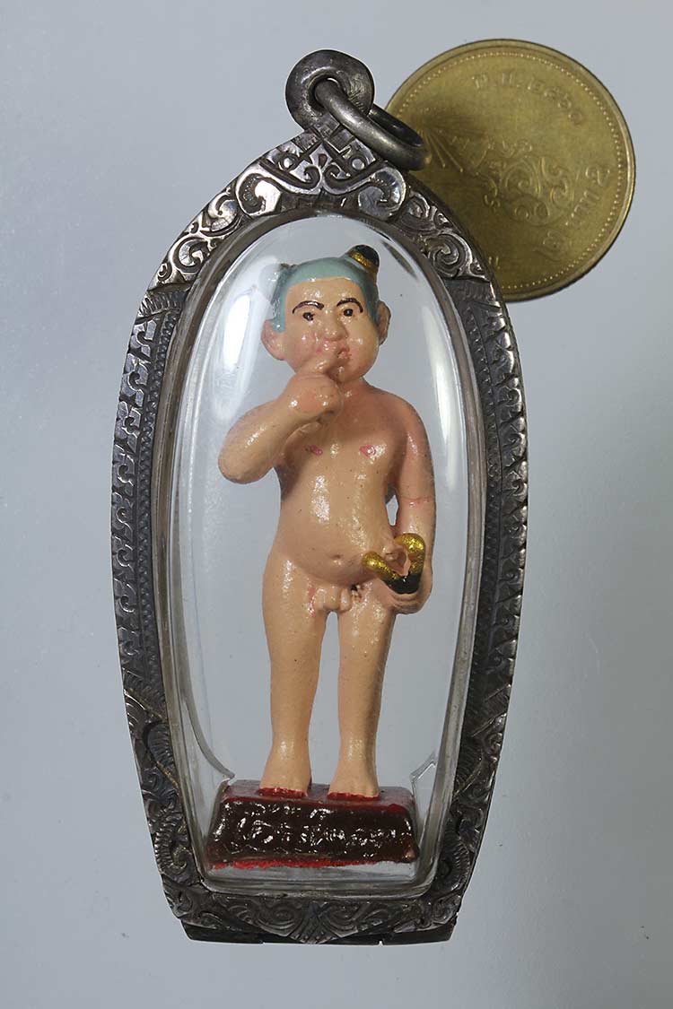 วัดใจ**เครื่องราง รูปหล่อกุมารส้มฉุน ตั้งหน้ารถ มีหมายเลข เลี่ยมตลับเงินสั่งตัดยกซุ้ม ใบใหญ่....สวย เดิมๆครับ