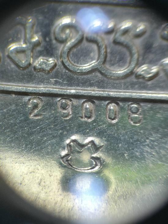 "เคาะเดียว"เหรียญพระพุทธโฆษาจารย์ วัดเขาไผ่ อ.บ้านบึง จ.ชลบุรี หลังยันต์น้ำเต้า ตอกโค๊ต และหมายเลข 29008 เนื้อเงิน น้ำหนัก 8.1 กรัม |