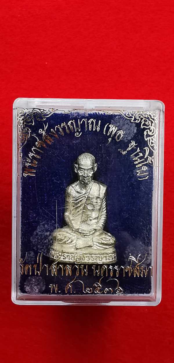 รูปเหมือนหล่อบรรจุเม็ดกริ่ง หลวงพ่อพุธ ฐานิโย วัดป่าสาลวัน จ .นครราชสีมา รุ่น 6 รอบ พ.ศ.2536 เนื้อเงิน ตอกโค๊ตหมายเลข178สภาพสวย กล่องเดิมน้ำหนัก16.3กรัม