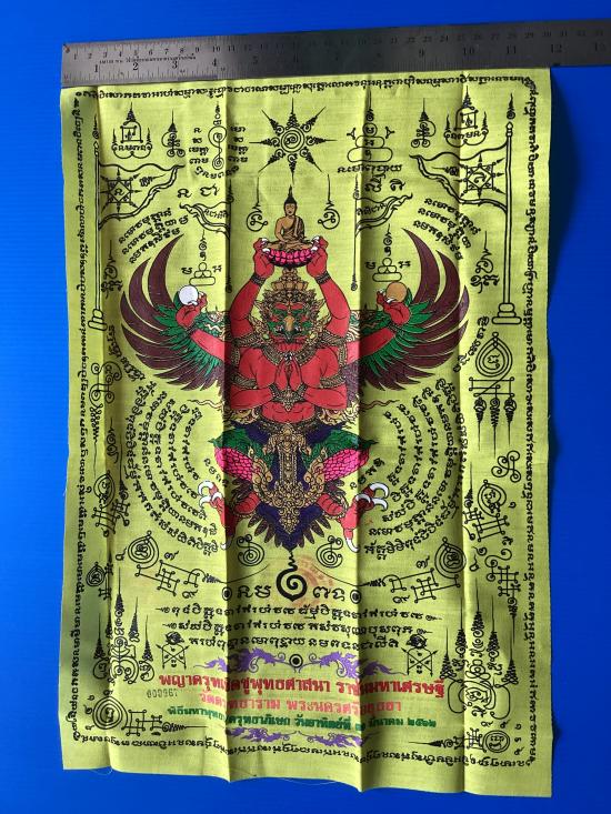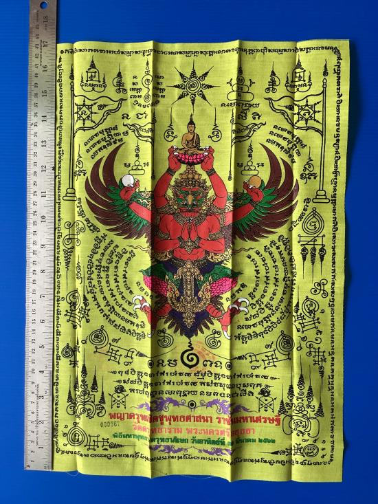 ผ้ายันต์ พญาครุฑ รุ่น ราชันย์มหาเศรษฐี วัดครุฑธาราม จ.พระนครศรีอยุธยา สีเหลือง ขนาด A3 ( 11.5 นิ้ว x 16.5 นิ้ว )