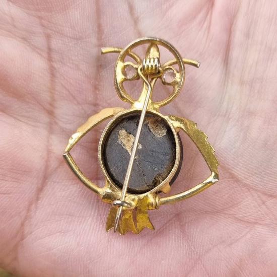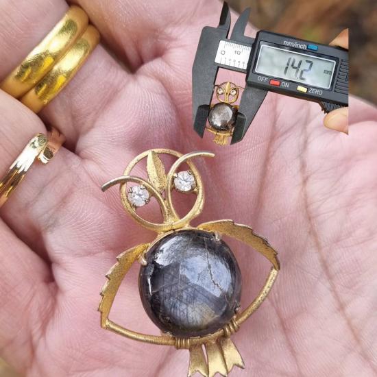 เข็มกลัดนกฮูกประดับ พลอยแซฟไฟร์สตาร์สีดำธรรมชาติ ขนาดเม็ด 14.2 มม. |