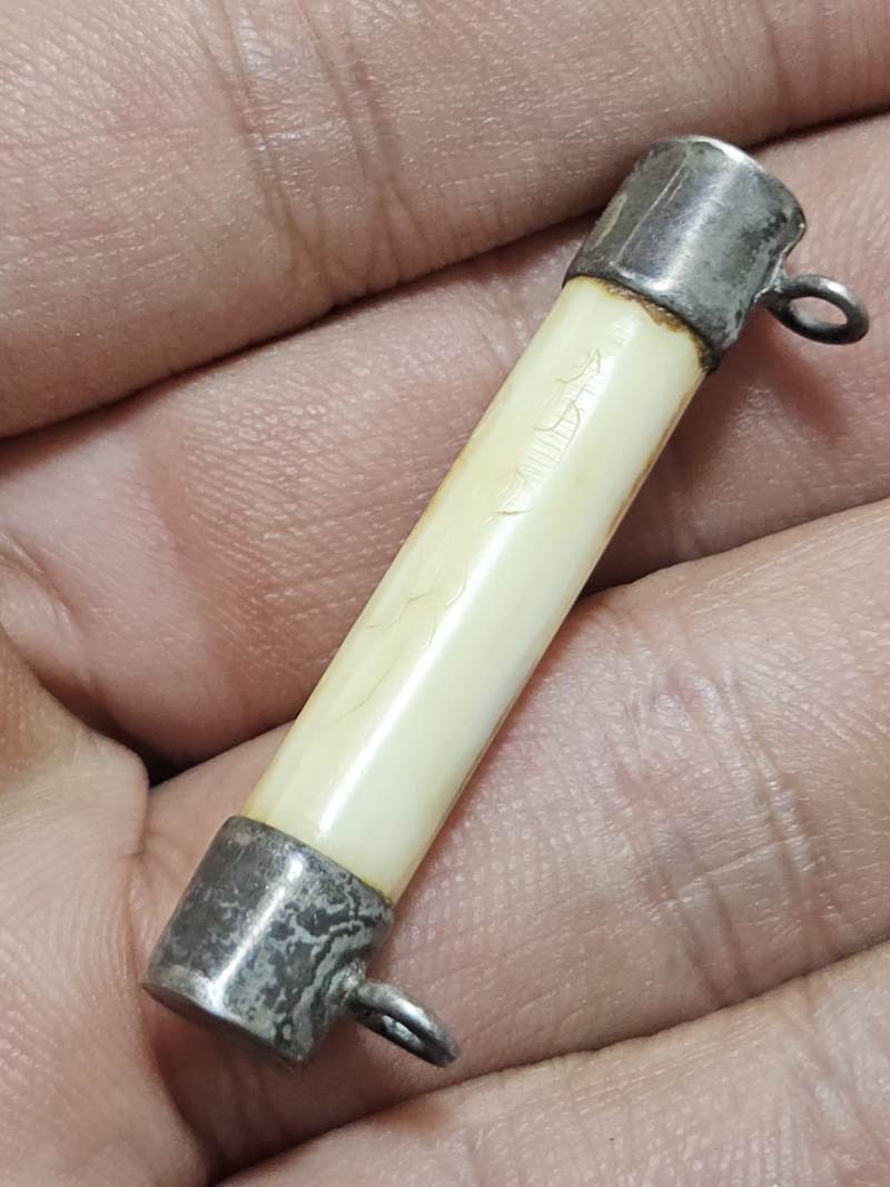 ตระกรุดงาไทย หุ้มเงิน สภาพสมบรูณ์ พร้อมรอยจารมือ ใครทราบที่จัดไปครับ |
