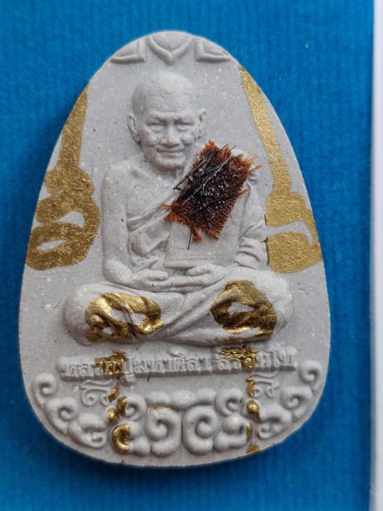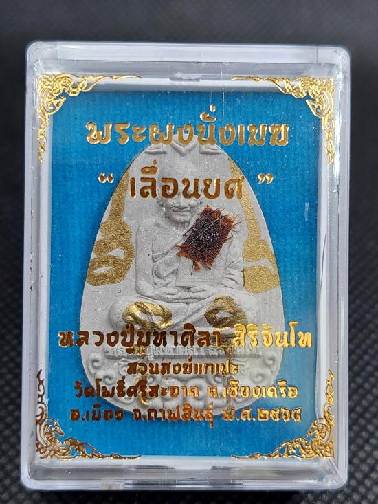 พระผงนั่งเมฆเลื่อนยศ หลวงปู่มหาศิลา สิริจันโท เนื้อขาวผงพุทธคุณจารหมึกทอง |