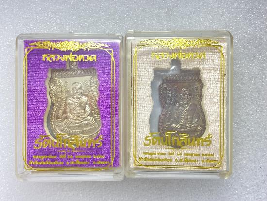 เหรียญเสมาหลวงพ่อทวด รุ่น รัตนโกสินทร์ พิมพ์เลื่อนทวีคูณ สำนักสงฆ์วัดต้นเลียบ จ.สงขลา ปี 2557 เนื้ออัลปาก้า หมายเลข 340 เนื้อทองแดงเถื่อน หมายเลข 1341 กล่องเดิม ( 2 เหรียญ ) |