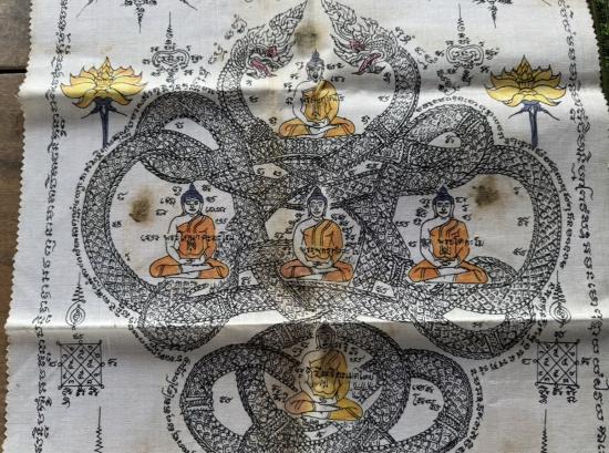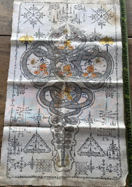 ผ้ายันต์นาคเกี้ยวไม่ทราบที่ ผ้าเก่าสีเก่า