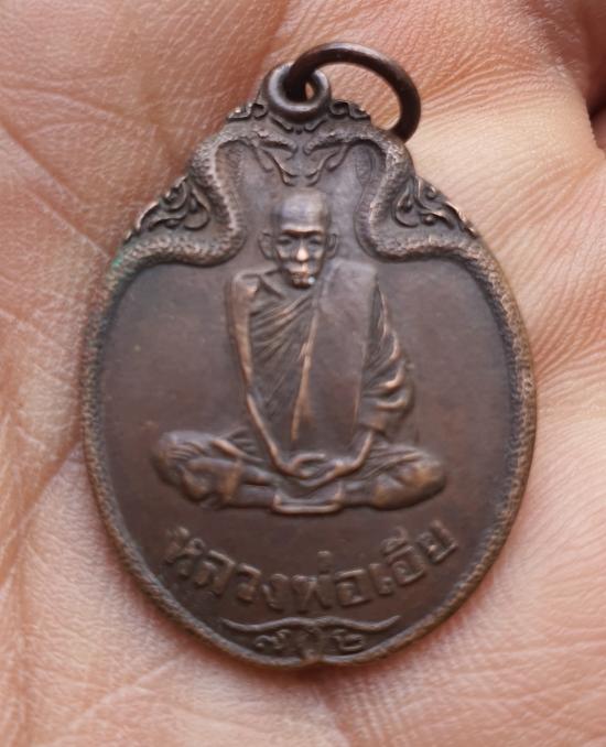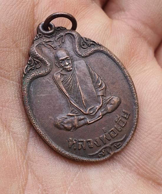 เหรียญงูเล็ก รุ่น 32 ( รุ่นสุดท้าย ) หลวงพ่อเอีย วัดบ้านด่าน เนื้อทองแดง ปี 2521
