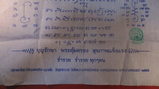 ผ้ายันต์ หลวงพ่อรักษ์ อนาลโย วัดสุทธาวาส วิปัสสนา อ.ลาดบัวหลวง พุทธมณฑลอยุธยา ครับ (พระบ้าน ครับ) |