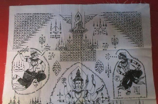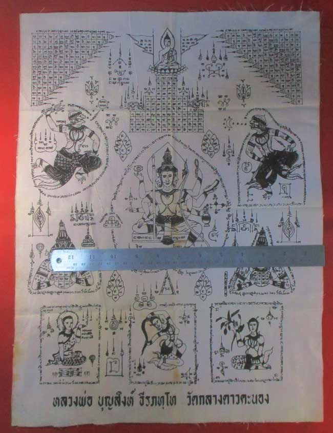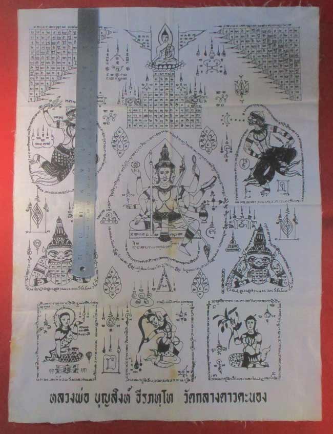 ผ้ายันต์ หลวงพ่อบุญสิงห์ ธีรภทฺโโ วัดกลางดาวคะนอง ลวดลายสวย ครับ (พระบ้าน ครับ)