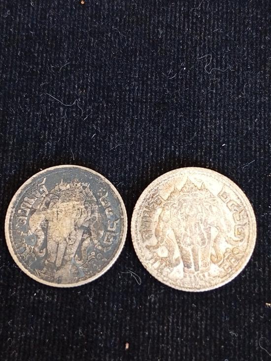 เหรียญ หนึ่งสลึง รัชกาลที่หก จำนวนสองเหรียญ พ.ศ.๒๔๖๒