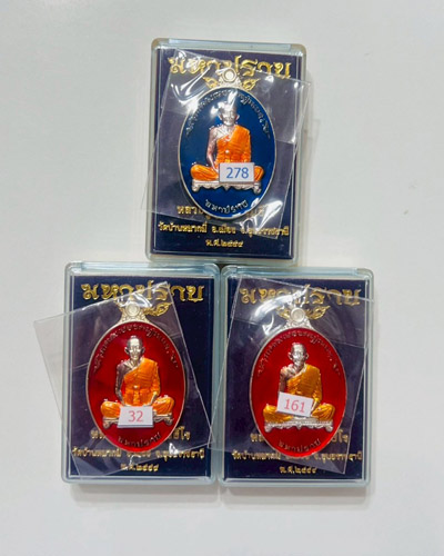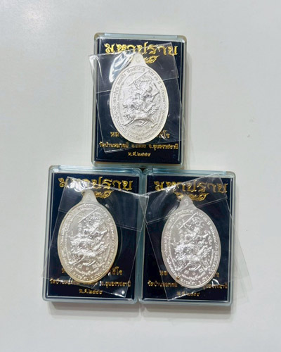 ชื่อพระเครื่อง วัดใจ เหรียญมหาปราบ1 หลวงปู่บุญ ธมมธีโร วัดบ้านหมากมี่ จ.อุบลราชธานี เนื้อกะไหล่เงินลงยา 3 เหรียญ