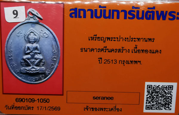 เหรียญพระปางประทานพร ธนาคารศรีนครสร้าง เนื้อทองแดง ห่วงเดิม ปี2513 จ.กรุงเทพฯ + กล่องเดิม + บัตรG-pra สภาพสวยเดิมค่ะ |