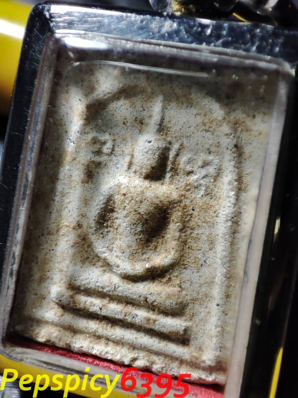 พระสมเด็จเหม็นหลวงพ่ออุ้น วัดตาลกง (สมเด็จคะแนนเหม็น) เนื้อผง ปี 2495 จ.เพชรบุรี พร้อมกรอบสแตนเลส