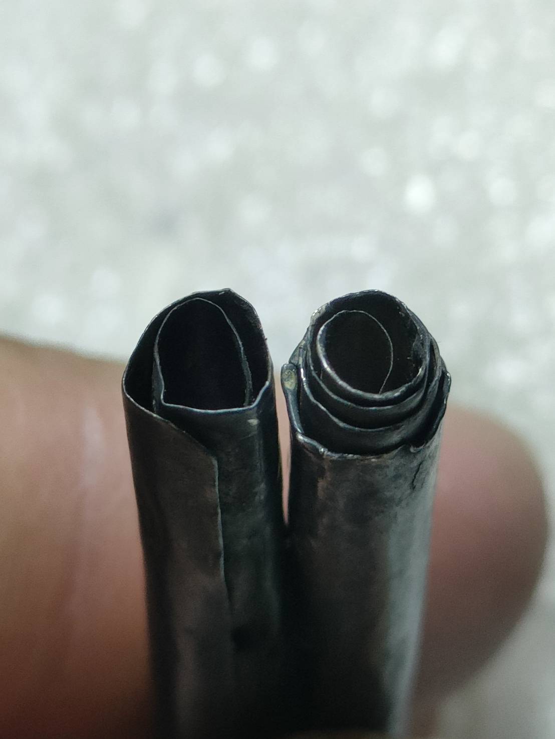 "เคาะเดียว"ตะกรุดเก่า เนื้อเงิน ไม่รู้วัด 2 ดอกเล็ก น้ำหนัก 5.3 กรัม |