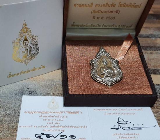 ขออนุญาตท่านอาจารย์เฉลิมชัย เหรียญพระพุทธเมตตารวยสุข(โฆสกาโร) เนื้อทองทิพย์เหลือบเงิน หมายเลข 5711 อุปกรณ์ครบ