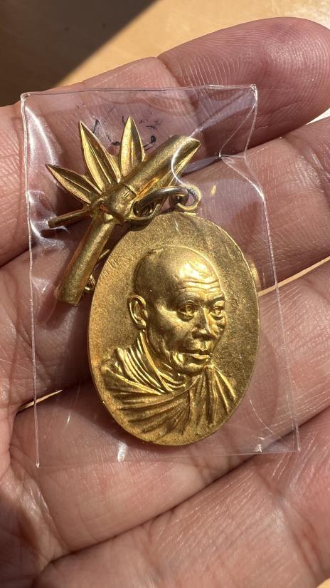 เหรียญกิ่งไผ่ หลวงพ่อเกษม เขมโก ปี2518 เนื้อกะไหล่ทอง |