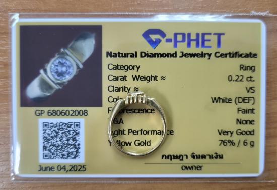 แหวนปลอกมีด เพชรเม็ดเดี่ยว 22 ตังค์ ตัวเรือนหนา ทอง18K /6กรัม