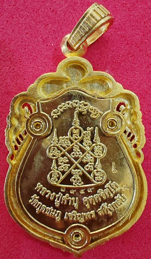 เหรียญเสมาฉลุลายข้างกนกยกองค์ยกองค์สดุ้งกลับ หลวงปู่คำบุ รุ่นเจริญพร สดุ้งกลับ (เนื้อทองระฆัง) วัดกุดชมภู จ.อุบลราชธานี