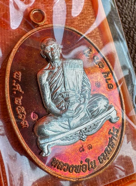 เคาะเดียวแดง เหรียญมงคลมหาเศรษฐีพ่อใย ทองแดงหน้ากากเงิน เลข 81 ครับ |