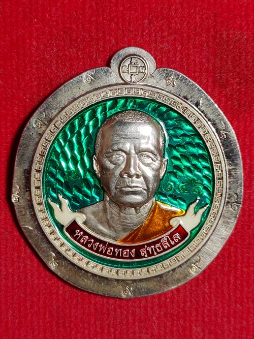 ชื่อพระเครื่อง รุ่นแรกเหรียญขวัญถุง มหาโชคมังกรคู่ หลวงพ่อทอง สุทธสีโล ออกวัดบ้านไร่ ปี 62 เนื้อ เงินลงยาสีเขียวพิมพ์กรรมการไม่ตัดปีกหลังยันต์ หมายเลข 146 ตอกโค๊ตเลข 9 เก้าตัว เคาะเดียวแดง
