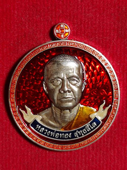 รุ่นแรกเหรียญขวัญถุง มหาโชคมังกรคู่ หลวงพ่อทอง สุทธสีโล ออกวัดบ้านไร่ ปี 62 เนื้อ เงินลงยาสีแดง หมายเลข 49 สภาพสวย เคาะเดียวแดง |