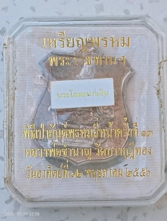 เหรียญพระพรหมพระราชทาน เนื้อนวะโลหะแก่เงิน หลวงพ่อชำนาญ วัดบางกุฎีทอง ปทุมธานี หมายเลข 664 |