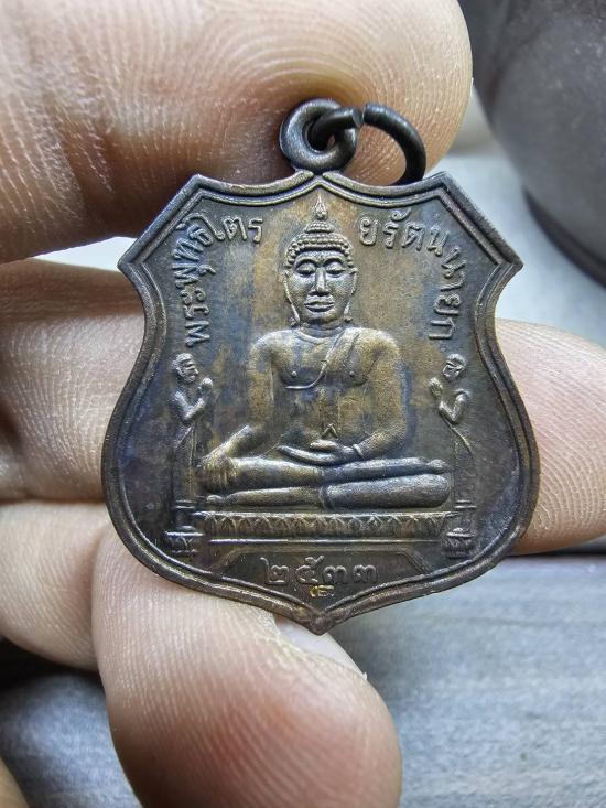 เหรียญหลวงพ่อโต วัดพนัญเชิง ปี 2533 เนื้อทองแดงรมดำ ตอกโค้ดด้านหน้า |