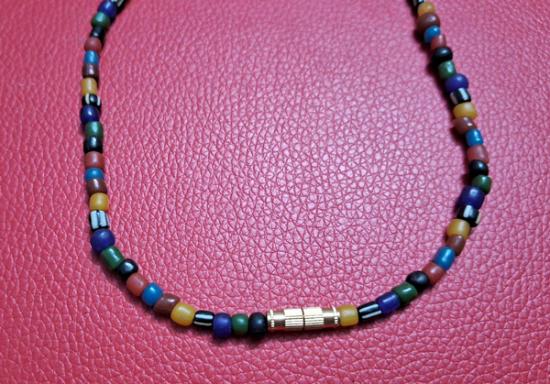 สร้อยคอลูกปัดทราวดี ลูกปัดโบราณสวยๆ ความยาว 24 นิ้ว สวมหัวได้หรือหมุนเกลียวทองเหลืองถอดออกก็ได้ สามารถห้อยพระได้ 1 องค์ (กท.21) |
