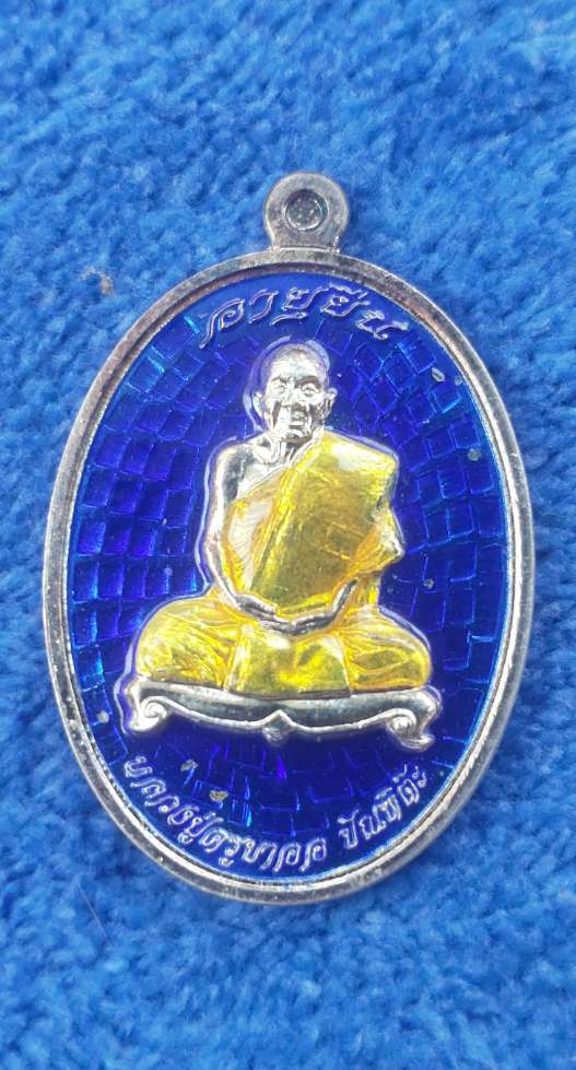 เหรียญอายุยืน ครูบาออ สำนักสงฆ์พระธาตุจอมแวะ เนื้อเงินลงยา เลข 55 เคาะเดียว