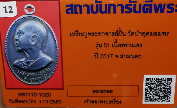เหรียญพระอาจารย์ฝั้น วัดป่าอุดมสมพร รุ่น51 เนื้อทองแดง ปี2517 จ.สกลนคร + บัตรG-pra สภาพสวยเดิมค่ะ สภาพตามรูปทุกประการค่ะ