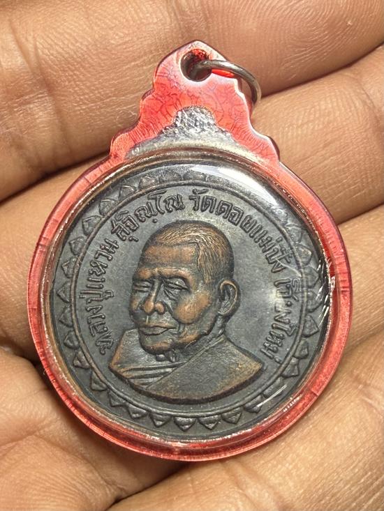 เหรียญหลวงปู่แหวน เขาค้อ เนื้อทองแดง ปี2517 เลี่ยมพลาสติกเก่าครับ