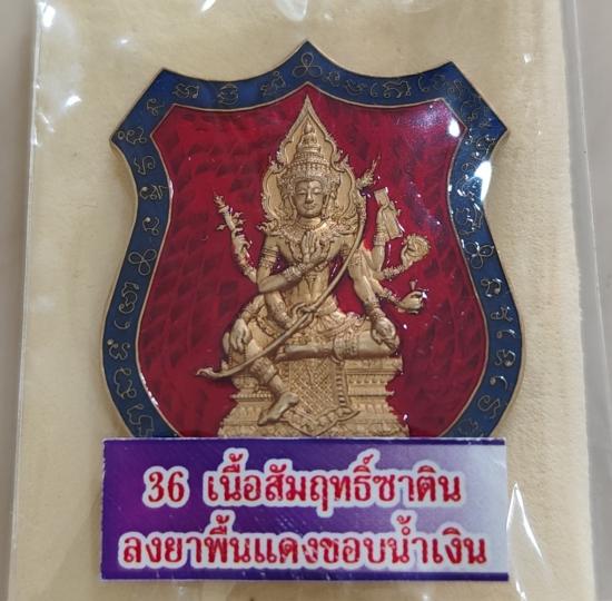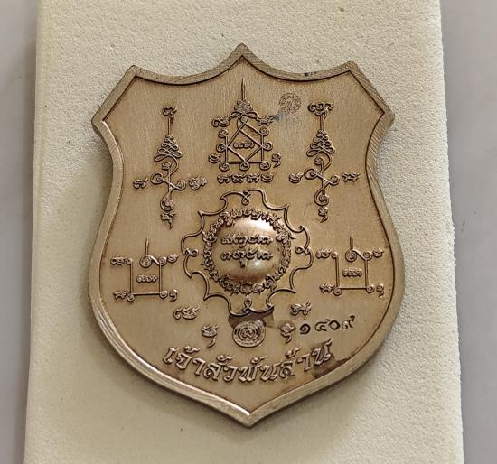 เหรียญท้าวมหาพรหม รุ่นเจ้าสัวพันล้าน(บอย ท่าพระจันทร์) เนื้อสัมฤทธิ์ซาตินลงยาพื้นแดงขอบน้ำเงิน เลขโค๊ต ๑๔๐๙ พร้อมกล่องเดิม |