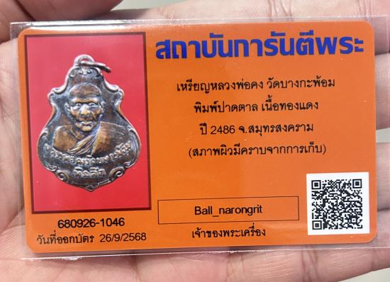 เหรียญหลวงพ่อคง วัดบางกะพ้อม พิมพ์ปาดตาล เนื้อทองแดง ปี 2486 จ.สมุทรสงคราม ไม่ผ่านการใช้งานครับ บัตรลงสภาพผิวมีคราบจากการเก็บเท่านั้น ไม่มีสึกหรอครับ เดิมๆครับ