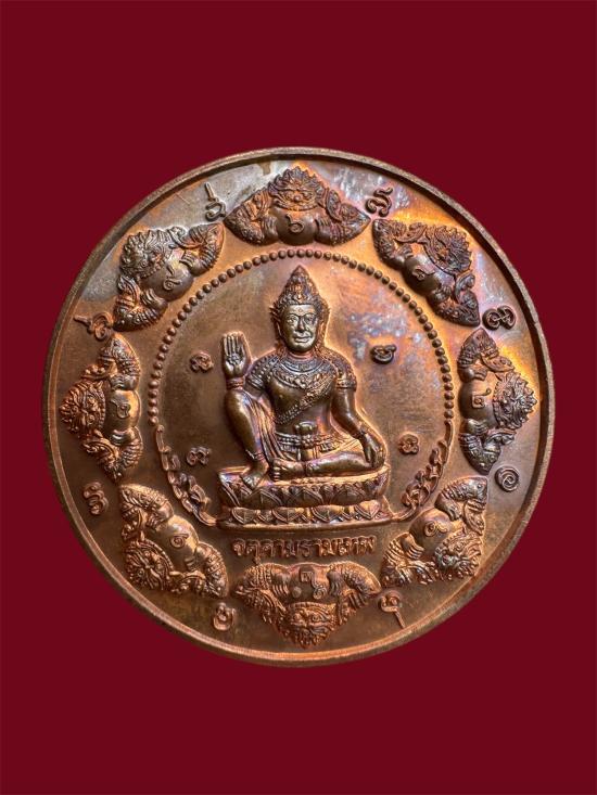 เหรียญองค์พ่อจตุคามรามเทพ รุ่นหลักชัย ที่ระลึกไหว้ครู วัดพุทไธศวรรย์ ปี49 เนื้อทองแดง ขนาด 4 ซ.ม.