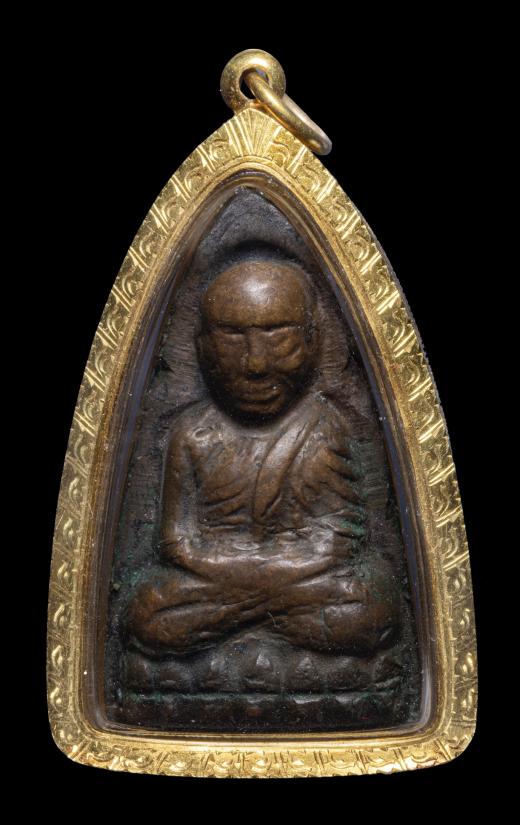 หลวงปู่ทวดเตารีดใหญ่ปั๊มซ้ำ เนื้อสำริด ปี 2505 สภาพใช้ เลี่ยมทอง ราคาเบา ๆ ครับท่าน