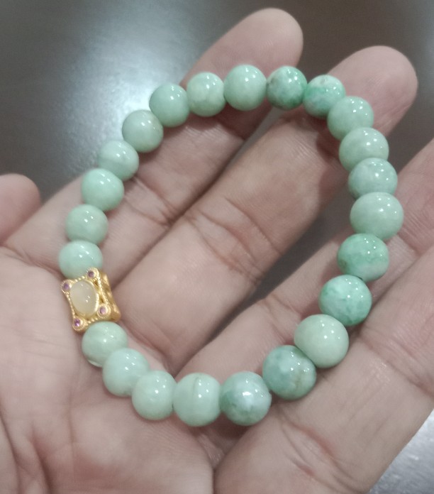 สร้อยข้อมือหยกพม่า/ขนาด8มิล/ร้อยยางยืดใส่สบาย/สินค้ามือ1/เส้นที่2