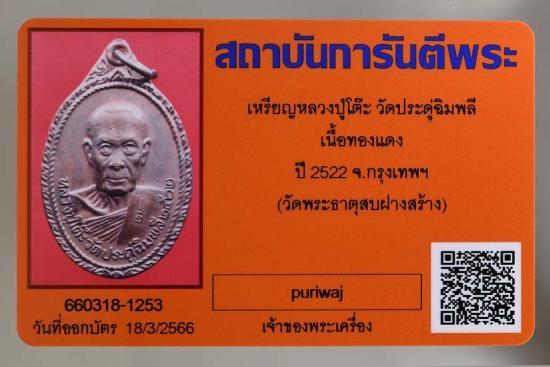 เหรียญหลวงปู่โต๊ะ พระธาตุสบฝาง เนื้อทองแดง ปี22 พร้อมเลี่ยมทอง