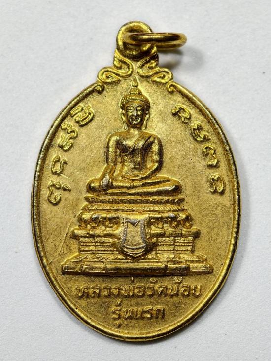 +++วัดใจ+++ เหรียญรุ่นแรก หลวงพ่อวัดน้อย วัดสิงห์สุทธาวาส จ.อยุธยา ปี2524 หลวงพ่อสุด วัดกาหลง ปลุกเสก ด้านหลังยันต์ตะกร้อ เนื้อกระไหล่ทอง