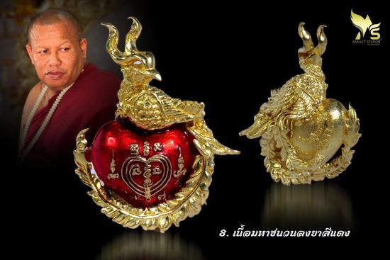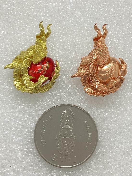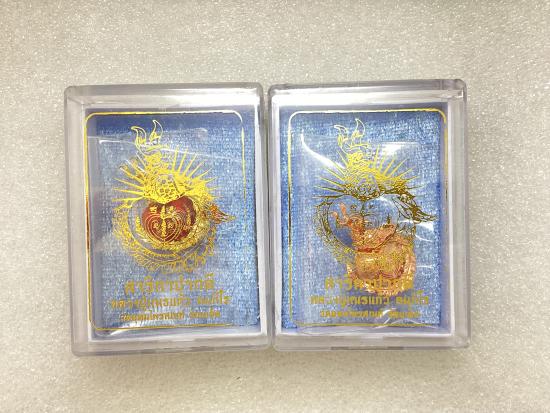 สาริกาปากดี หลวงปู่เณรแก้ว วัดอุดมไพรสณฑ์ จังหวัดร้อยเอ็ด เนื้อมหาชนวนลงยาแดง , ทองแดง กล่องเดิม ( 2 ชิ้น )