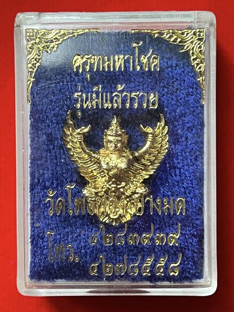 พญาครุฑ หลวงพ่อวราห์ วัดโพธิทอง รุ่นมีแล้วรวย ปี 38 เนื้อกะไหล่ทอง ตอกโค็ด ว กงจักร เคาะเดียวแดงครับ