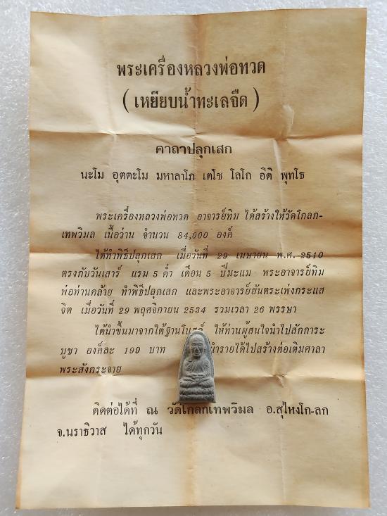 เคาะเดียวแดง ....หลวงปู่ทวดเนื้อว่าน วัดโกลกเทพวิมล อ.สุไหงโก-ลก จ.นราธิวาส ปี2510 พร้อมซองเดิมและใบกำกับ อาจารย์ทิม วัดช้างให้ พ่อท่านคล้าย วัดสวนขัน ปลุกเสก สภาพสวย |