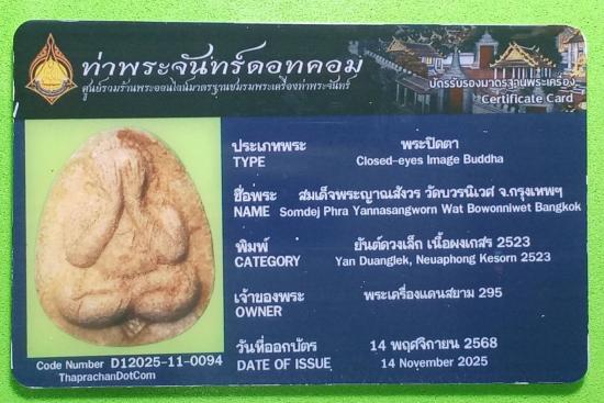 พระปิดตายันต์ดวงเล็ก หรือยันต์ดวงสุกิตติมา เนื้อผงเกสร ๑๐๘ ชนิด ตัวอิ๊วประทุ สอดตะกรุดเงิน สมเด็จพระญาณสังวร(เจริญ สุวัฑฒโน ปธ.๙) พิธีพุทธาภิเษก ณ พระอุโบสถคณะรังสี วัดบวรนิเวศวิหาร ๒ ตุลาคม ๒๕๒๓ หลวงปู่โต๊ะ วัดประดู่ฉิมพลี ร่วมปลุกเสก สมเด็จพระญาณสังวรฯทรงจุดเทียนชัยและประธานอธิษฐานจิต พร้อมด้วยพระคณาจารย์แห่งยุคอีกหลายรูป ไม่มีกล่อง เคาะเดียว มาพร้อมบัตรรับรองชมรมพระเครื่องท่าพระจันทร์
