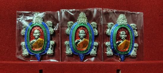 แบ่งปัน เหรียญพญาเต่าเรือน รุ่น โคตรเศรษฐี หลวงปู่จื่อ พนฺธมุตโต วัดเขาตาเงาะอุดมพร จ.ชัยภูมิ รายการเนื้อกะหลั่ยเงินลงยาแดงเขียวน้ำเงินลงยาจีวร หมายเลข 137/200/393 ชุด 3 องค์ แท้ทันประกันให้ครับ |